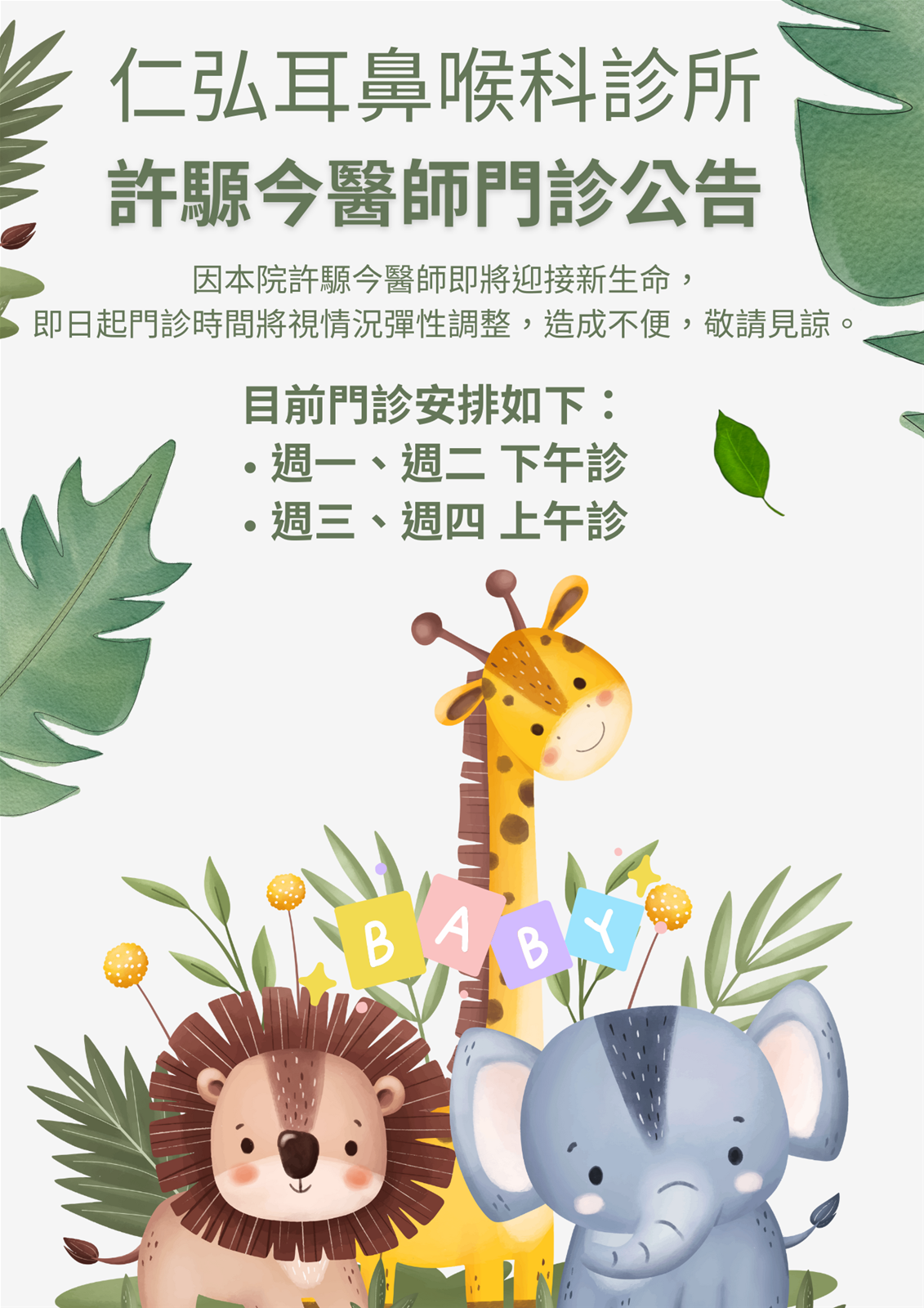 許騵今醫師門診公告