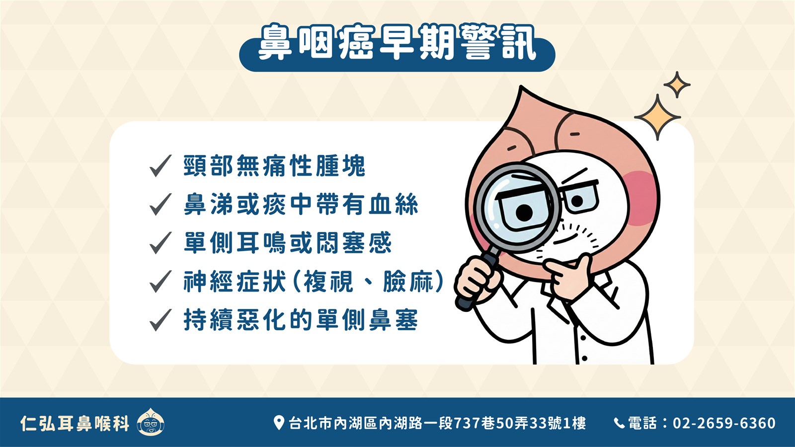 鼻咽癌早期症狀有哪些?單側耳鳴、頸部腫塊別輕忽!台北內湖鼻咽內視鏡檢查