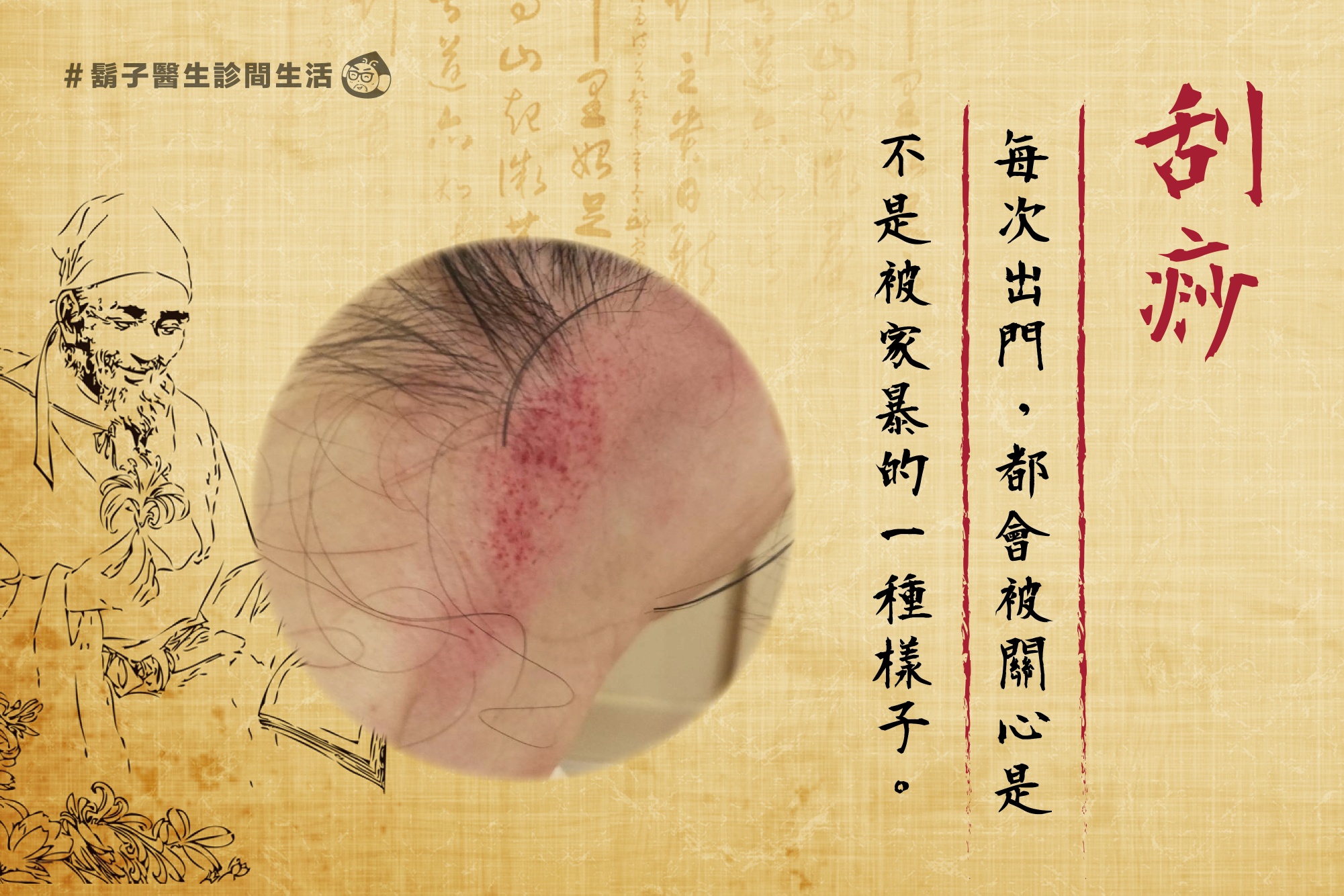 鬍子說,應該就是「#刮痧」啦!尤其一到大熱天突然轉冷時,還真的碰到蠻多病人頭髮一撩,都是 #瘀血!!